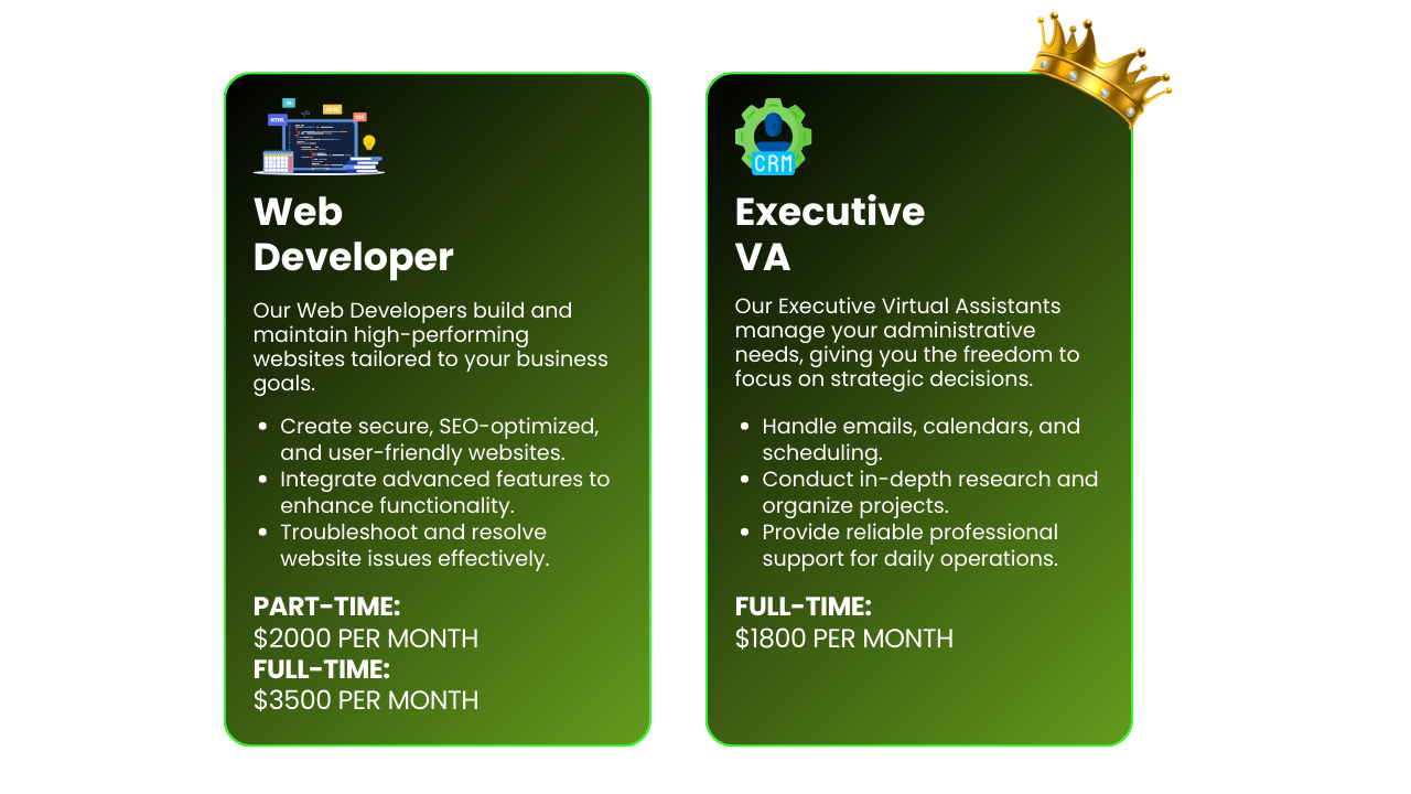 But imagine a world where you reclaim your time, where you can focus on strategic growth while someone adept handles the nitty-gritty. That's the promise we offer. Let our specialized VAs step in and shoulder some of that weight, allowing you to rediscover the joy and passion of running a business without being bogged down by every minute detail.
